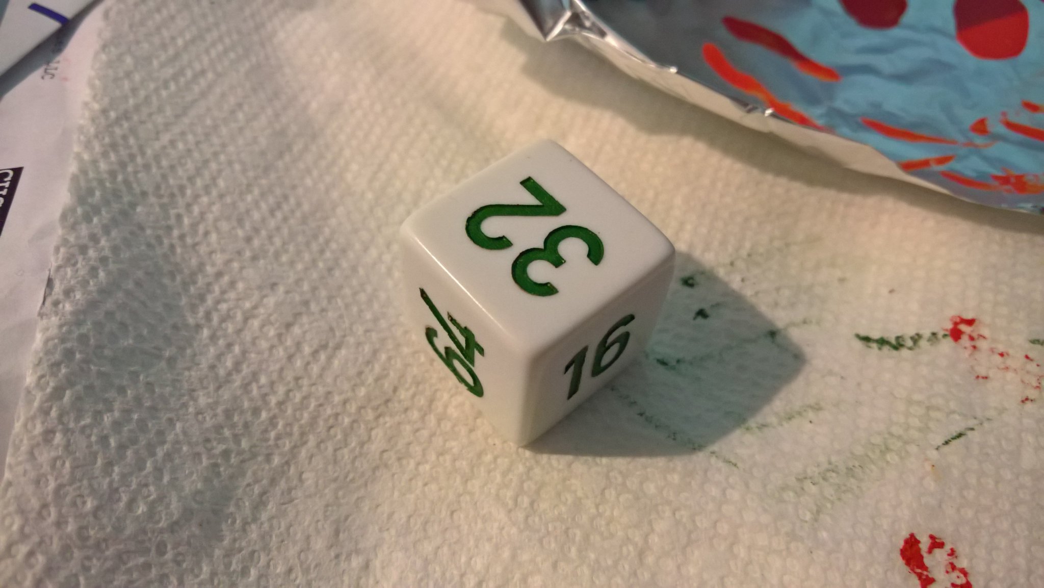 I also experimented with lasering some blank dice, then painting them:
